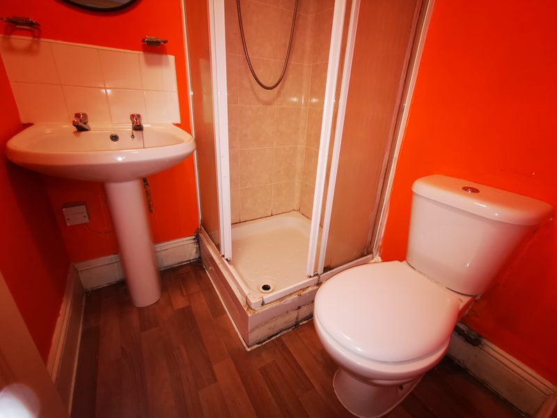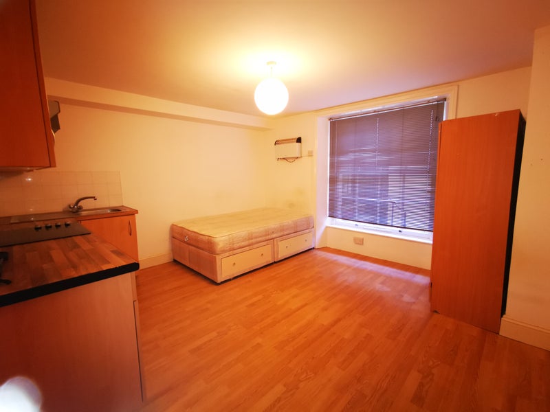 Good sized studio flat with fitted kitchen. Built in hob/oven, fridge. Shower room with electric shower. Laminate flooring throughout.