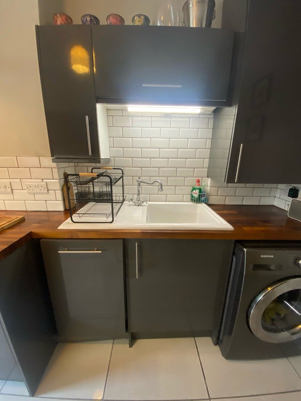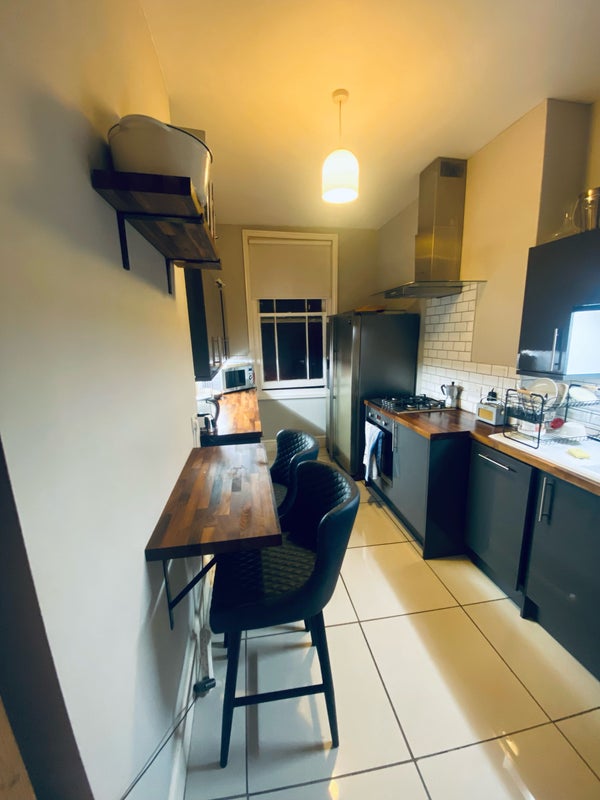 The rent includes access to the bedroom, shared kitchen with breakfast bar, large fridge/freezer, hob/oven, washing machine, microwave etc; shared shower room with bathroom, sink and shower, and includes bills. There is no living room or communal area apart from the shared kitchen.