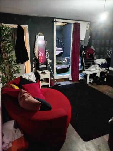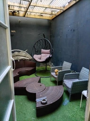 The property benefits from a private garden area with roof coverage, providing a sheltered external space for resident use. This area is suitable for practical purposes such as laundry drying or outdoor storage, in addition to casual seating.