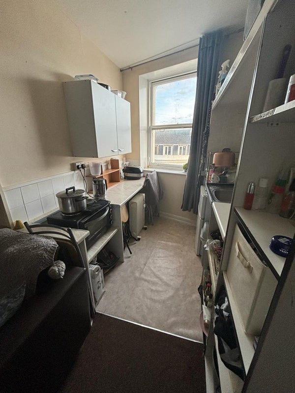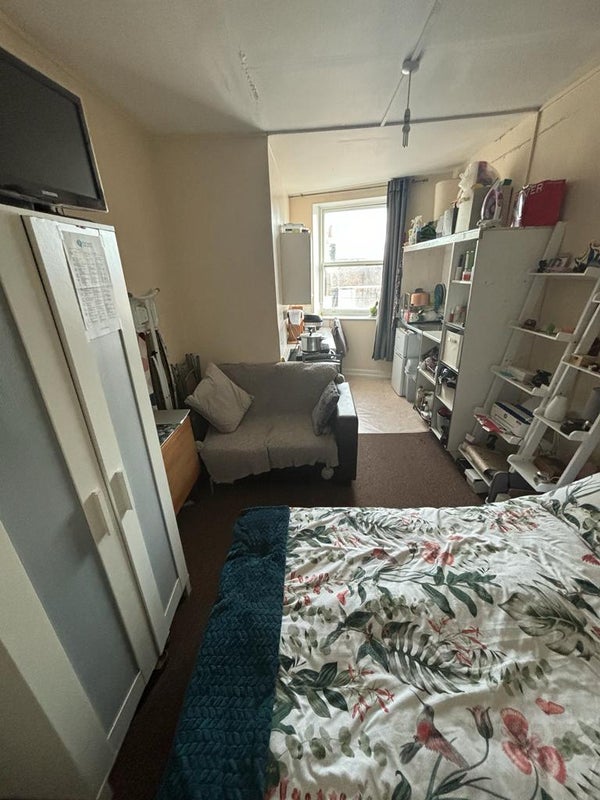 Available early May is this cosy, bright bedsit. The property is unfurnished but includes necessary essentials such as fridge freezer and electric cooker with hobs.
