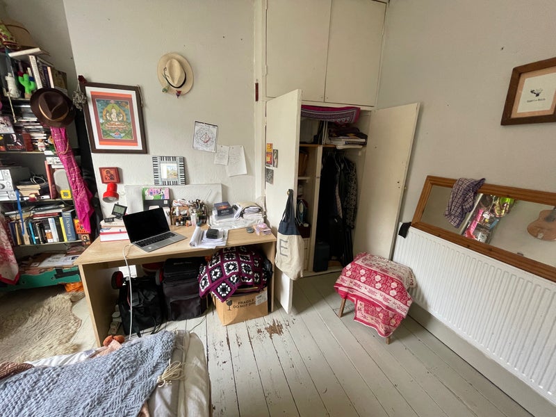 Double room with inbuilt storage space House share in lovely house 25 mins walk from centre and sea .