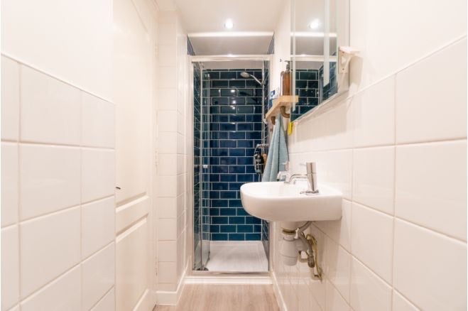 Modern bathroom with a good shower and unlimited hot water.