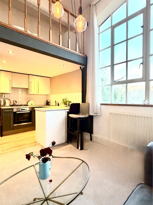 High ceilings allow for a unique mezzanine with space for another double bed.