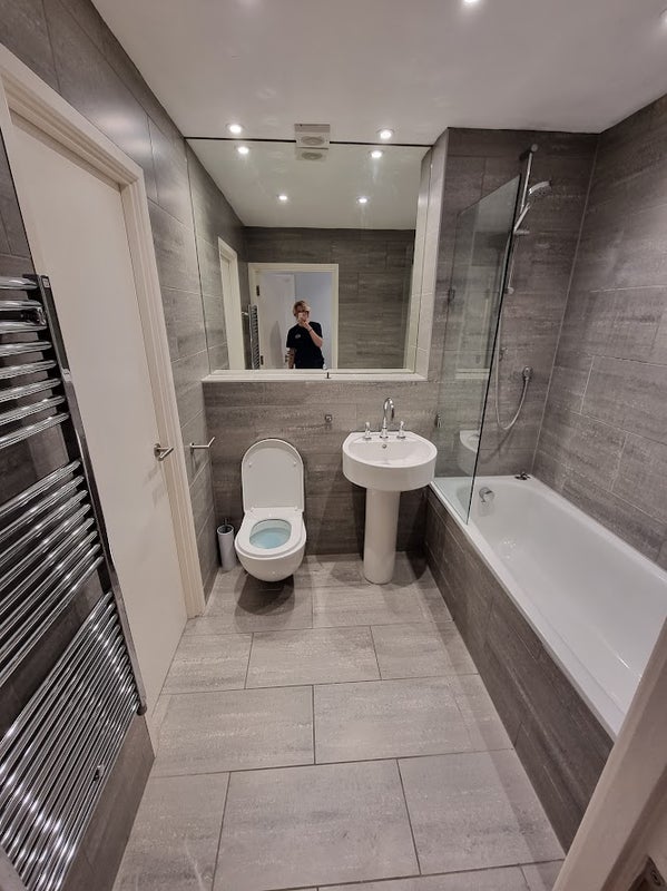 It is a 2 bed property - I have an en suite in my bedroom, meaning the main bathroom (with shower and bath) is practically only for you (barring guests!) The bathroom also has a large airing cupboard, and I only use the top shelf. There is a washing machine and a dishwasher. The living room and kitchen is combined but the TV acts as a sort of divide between the two.