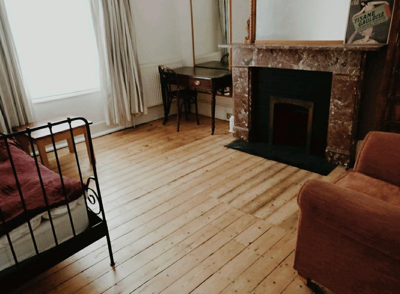 Female wanted for large (14 ft x 12.5ft approx) sunny double room together with equipped private kitchen and shower room (small kitchen and shower room shared with just 1 other lodger also female) and small outside patio on the ground floor of our grade two listed townhouse.