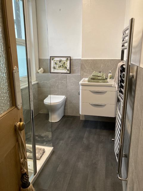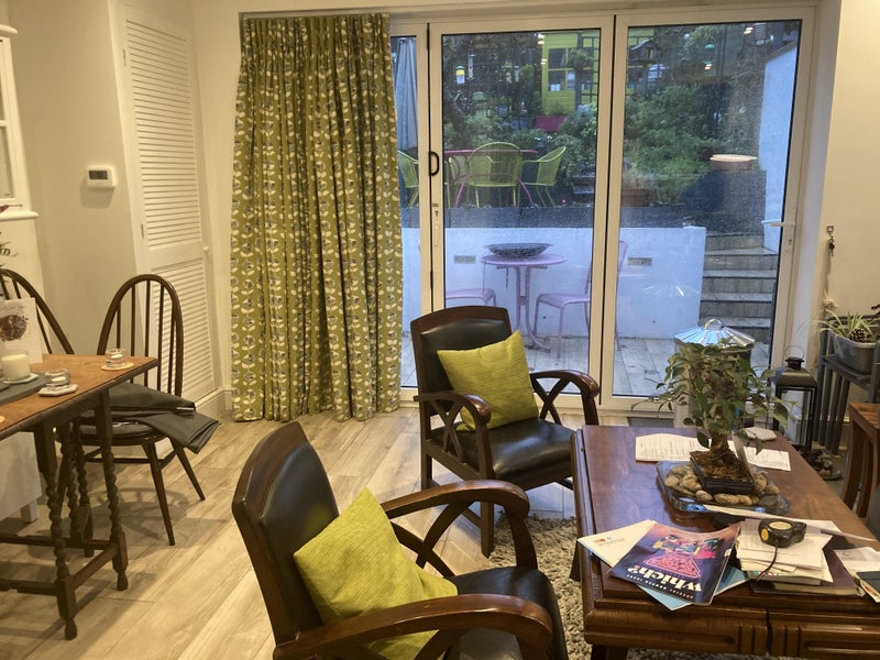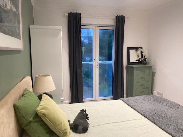 I am offering a lovely, quiet, recently decorated and refurbished double room with a Juliet balcony overlooking the garden. Plantaion shutters at both windows. Fully furnished with small desk. It has sole use of the newly fitted adjoining shower room, with toilet.