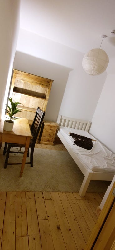 Living room: There are yoga mats, massage mats, cushions, the near perfect setup for floor life :) There will soon be a digital piano. There's also an awesome wood burner. There's a scaffold pole running across the ceiling with a hanging yoga swing (for inversions), wooden gym rings and paintings and hanging fabrics. No permanent sofas or large furniture. If you are into mostly floor life you'll fit right in! It's a sunlit living room that would also suit someone doing online classes perhaps or who needed a space to paint for example. I do also have a table for six with benches that can be put in place and also removed relatively easily. In the day time I sometimes work in the room, but you're welcome to use the space too.
