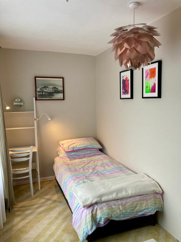 It’s a nice clean bright room with a queen-size (small double) bed (currently a single but will be changed soon)