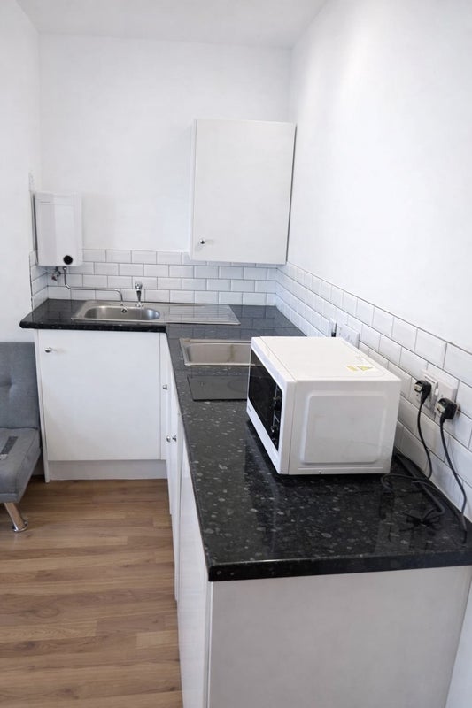 The studio includes a private kitchenette, providing flexibility for both short and longer stays, within a clean and well-maintained environment suited to working individuals. Conveniently located close to the station and town centre, with easy access to local amenities and transport links.