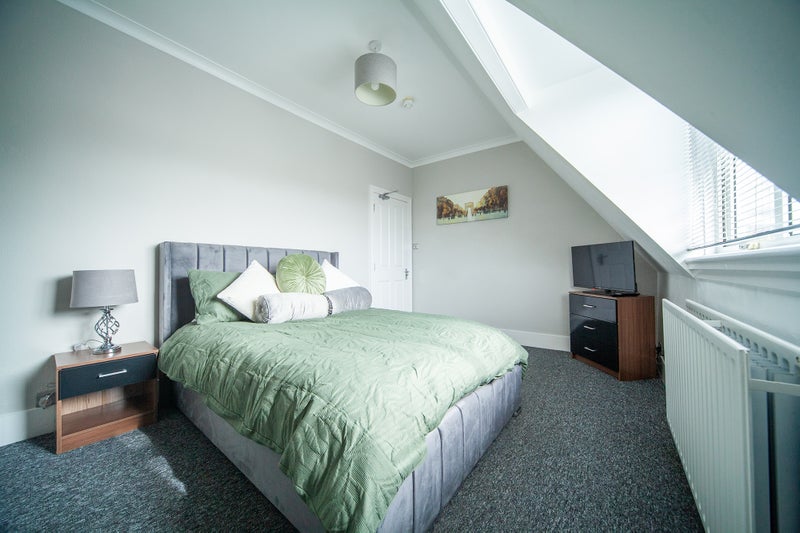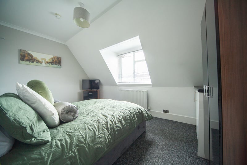 Situated in a terrific location for the main town in Eastbourne, this freshly decorated room with full-size double bed is rarely available. Decorated in contemporary Grey/White with complementary Black / Walnut furniture and modern gas-lift Ottoman bed, the room has a spacious feel with plenty of light and a high position in the house (2nd floor). A 32" Smart TV can be supplied if required too, with Netflix and streaming services provided by a Fibre Broadband connection running at up to 900Mb. A snack station & Fridge / Freezer box are also provided in the room for your convenience.
