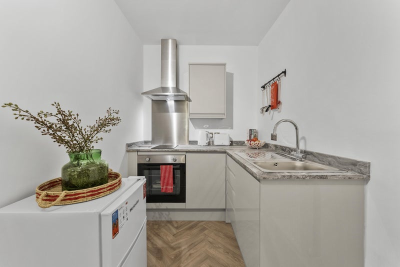 A beautifully finished second-floor studio at Bella Wharf, designed with simplicity, quality, and comfort in mind.