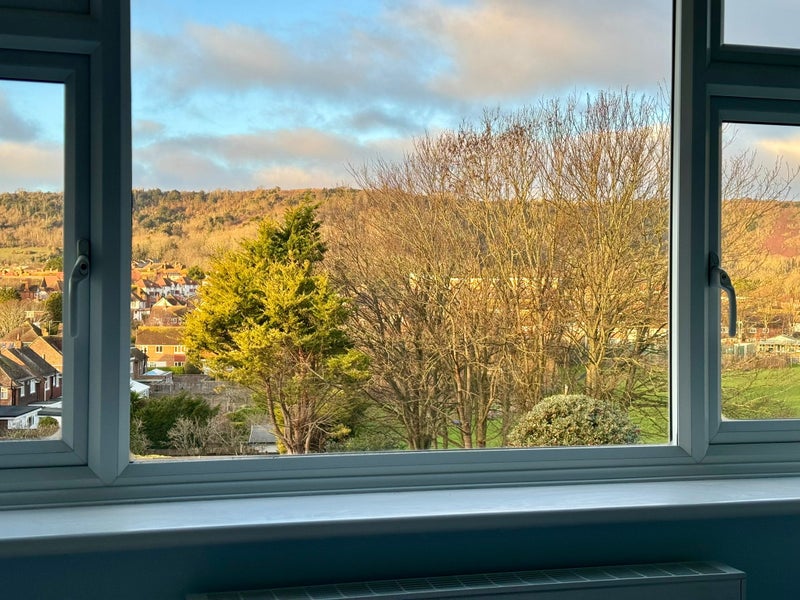 The room is south facing with panoramic views across Downside & onto the South Downs. It gets the sun all afternoon and evening.