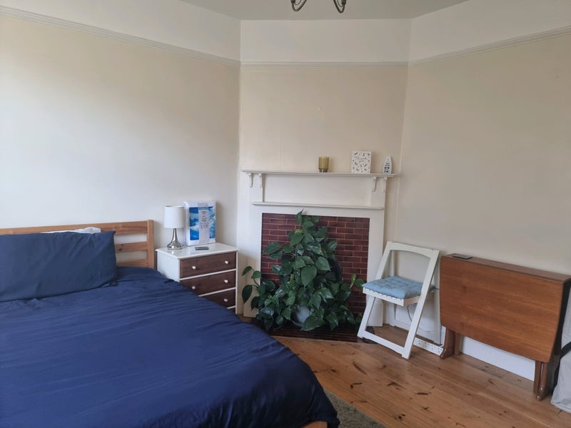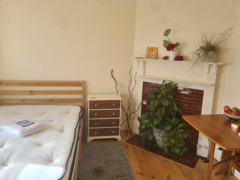 The room is a sunny double room at the front of the house which is furnished with a double bed, arm chair, coffee table, wardrobe, drawers, bedside table with drawers, a table and dining chair, other storage space under the bed. A TV may be available (no TV ariel socket) the photos don't show the size of the room accurately. Some furniture can be removed as necessary.