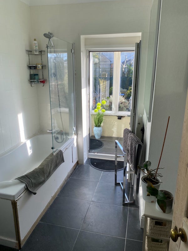 Shared bathroom, with a shower and bath.