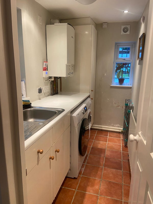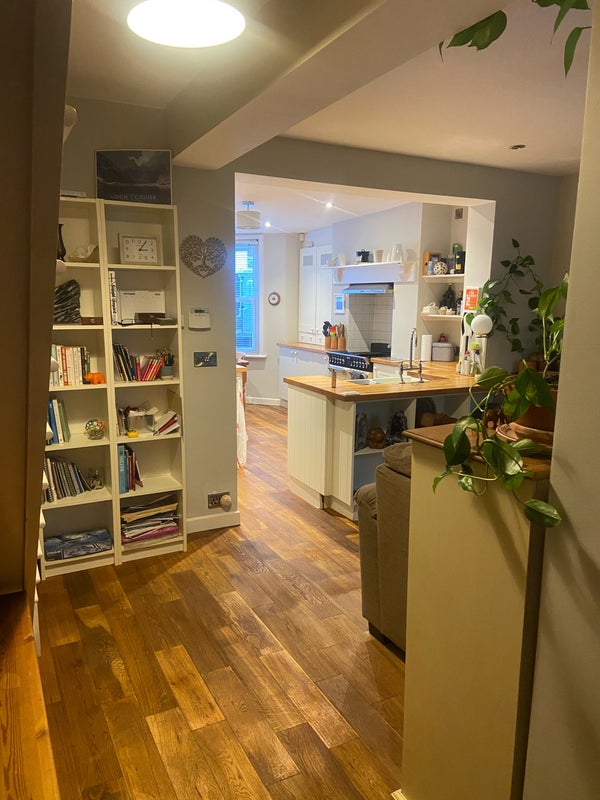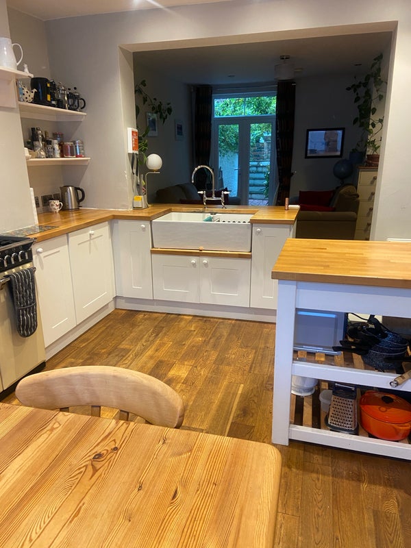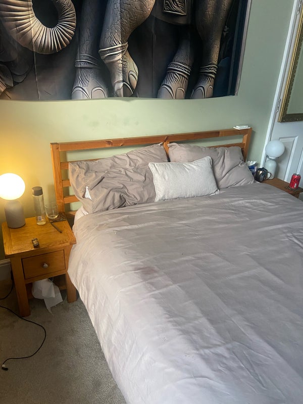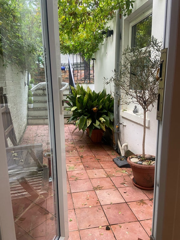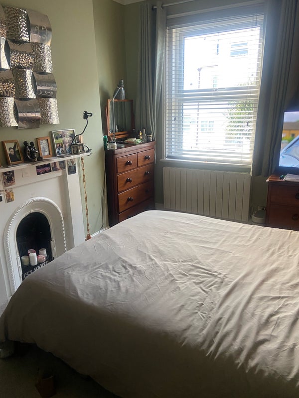 Top floor double room overlooking gardens. Smart decoration, hue lights , lots of drawers & a hanging rail