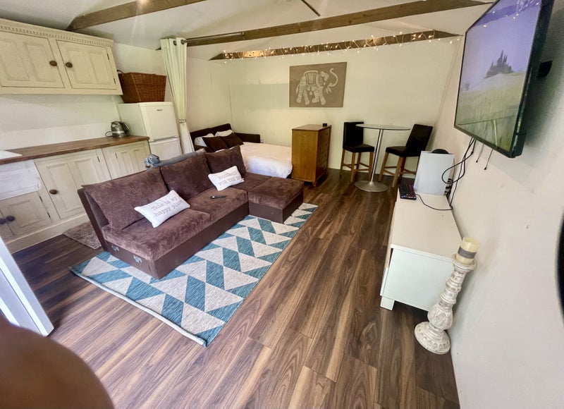 Essentially a self contained flat but you'll use lovely shower, bathroom facilites in the main house.