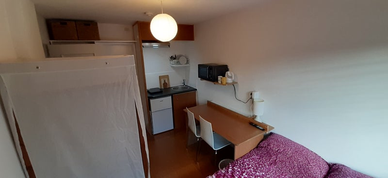 Bedroom with kitchenette and ensuite.