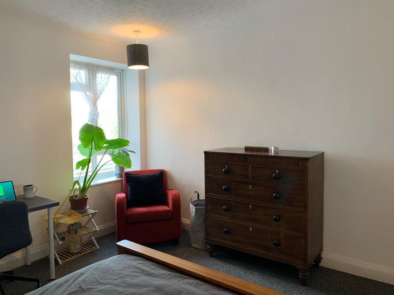 The room comes with the double bed, mattress, bedding if needed, chair, chest of drawers, and lamp, and will be available from 7th February.