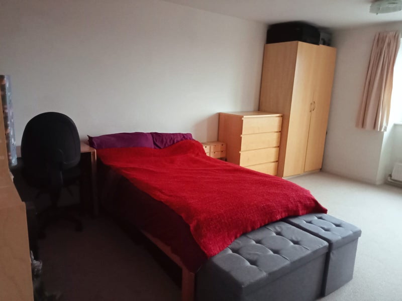 The double bedroom is large in size and has built-in wardrobe, and has loads of space for you to make it your own. It would easily fit a double bed, desk, shelving unit, full size mirror.