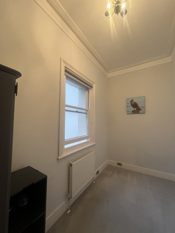 The bedroom is a good size, you could fit a double bed and has a nice big window. It is really bright and quiet at the back of the flat. There is some storage above the hallway if needed. The living room is furnished but happy for you to add your own touch to the place!