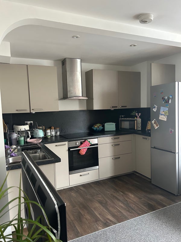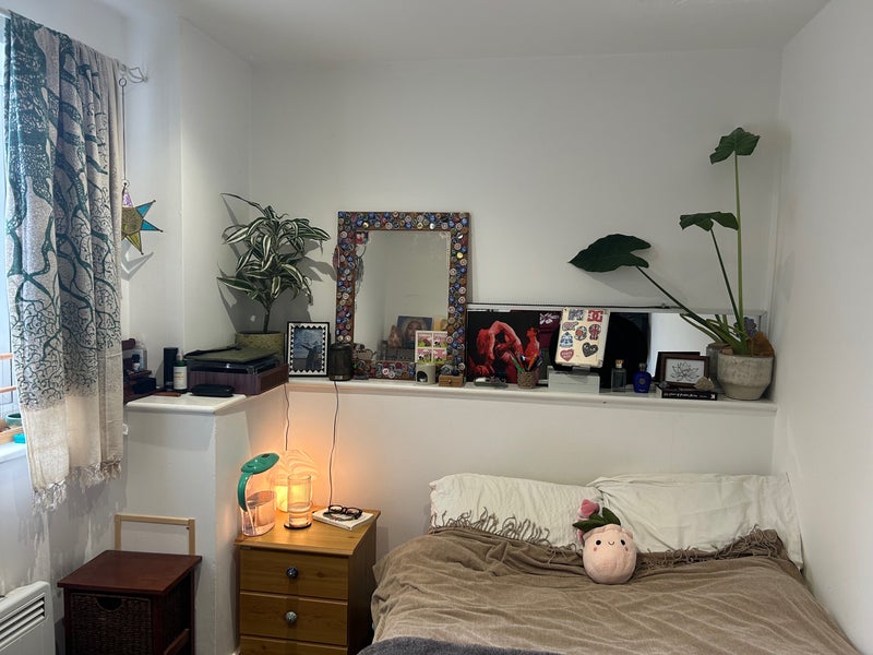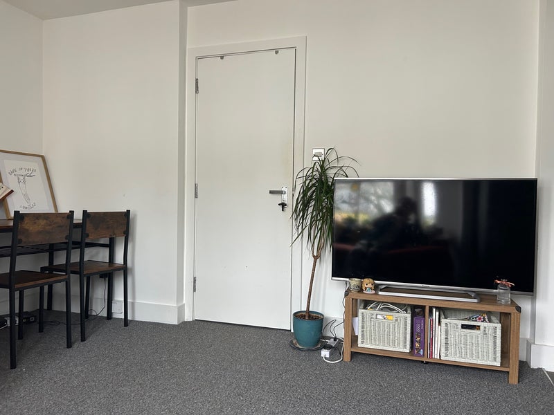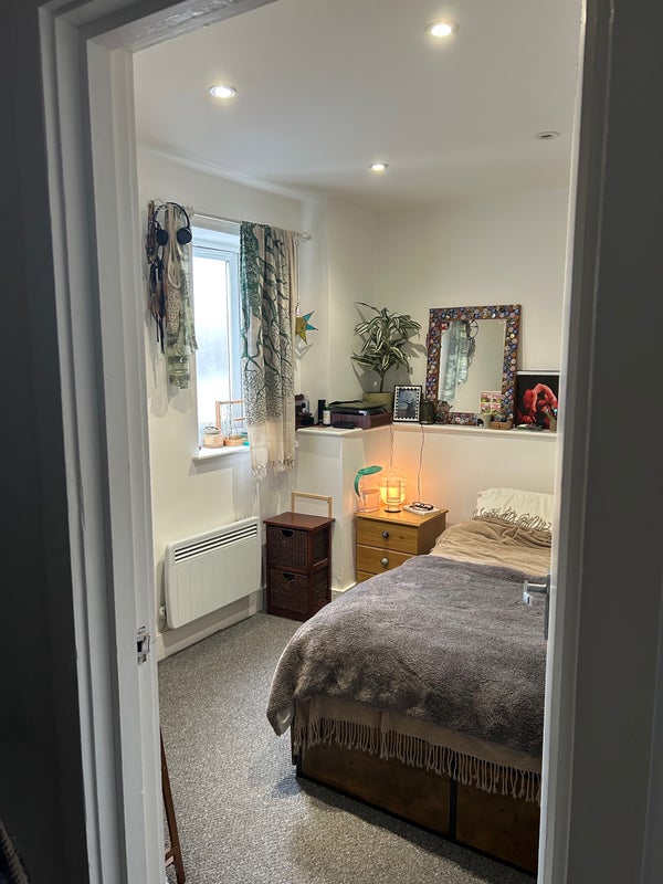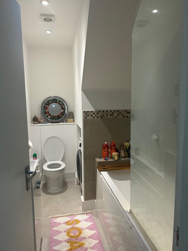 Flat has two floors, I am on the second floor with a larger room and en-suite, paying a bit more rent. Shared living room/ kitchen area and shared bathroom downstairs.