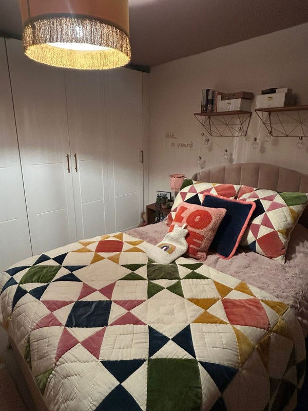 It’s fully furnished with all my stuff (which is a bit quirky). But the wardrobe and drawers will be empty for you to use and of course the fridge / freezer. There are 2 balcony’s front and back with sea views. The front one isn’t as useable though due to work needed to it.