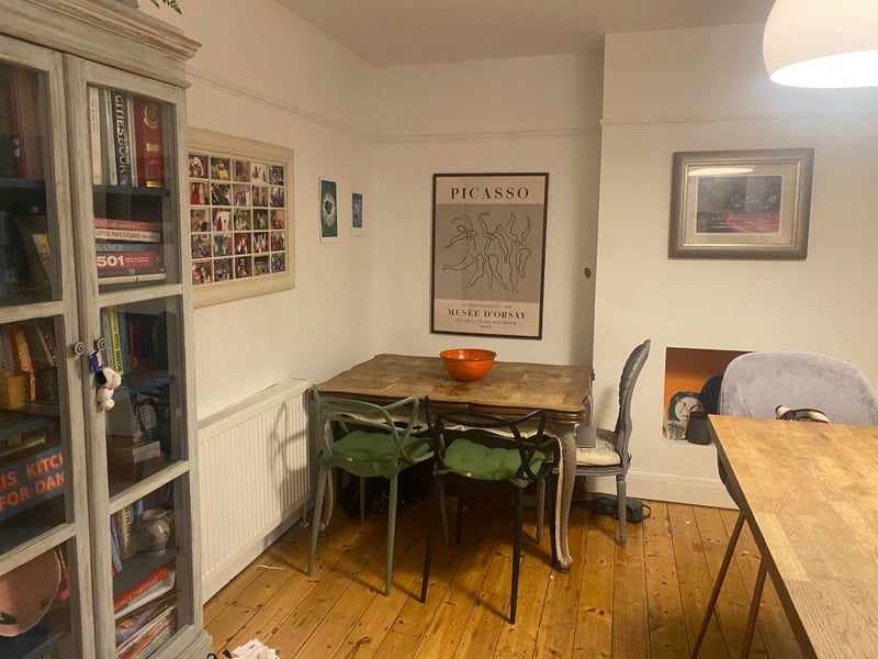 Spare room in a quiet, calm friendly family home. The room is well equipped with a double bed and bedside lockers. 2 wardrobes and bookshelves. it is bright and spacious. There is a bathroom next door with a bath and over bath shower and a separate toilet. This would be currently shared with another female lodger. Downstairs there is a kitchen and living room and a second toilet. outside there is a garden front and back and storage to the side for a bike.