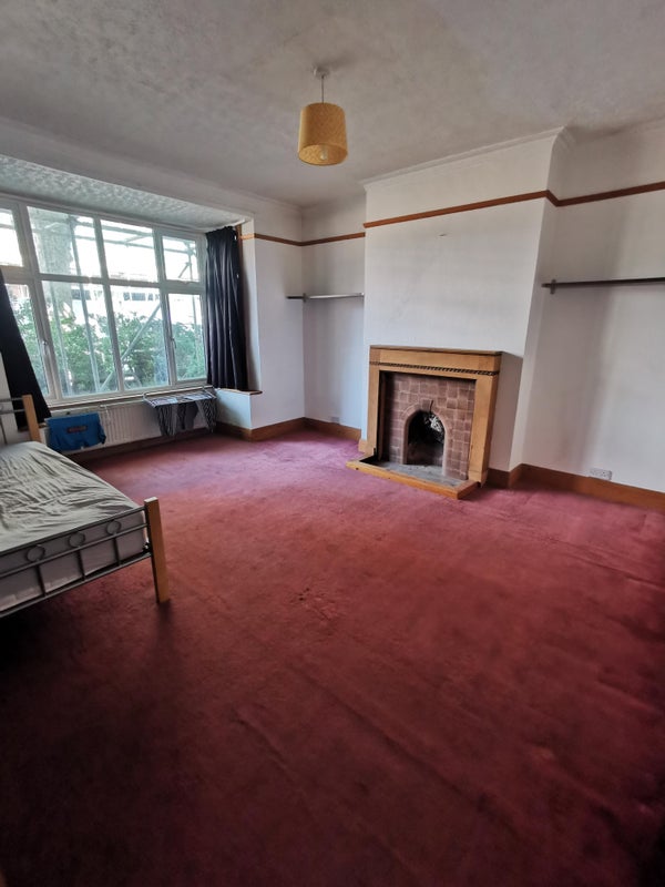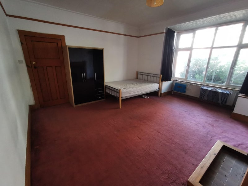 The room is a very large double, unfurnished, though it does include a couple of wall shelves and a small double bed if you’d like to keep it. It’s north-facing with a double-glazed bay box window and a (non-working) fireplace. There’s plenty of space....our previous flatmate comfortably had a bed, sofa area, desk, wardrobe and TV, with room to spare