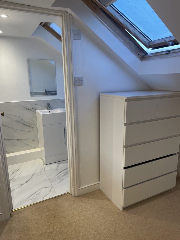 Our lovely light and airy double ensuite loft room is available in June with flexible start and end dates. We have a large modern kitchen with washer dryer and space outside. We have two dogs and live a minute away from shops, bars and cafés. We are a five minute walk from Aldington station a 10 minute walk from Hove seafront and two minutes walk to the nearest bus stop