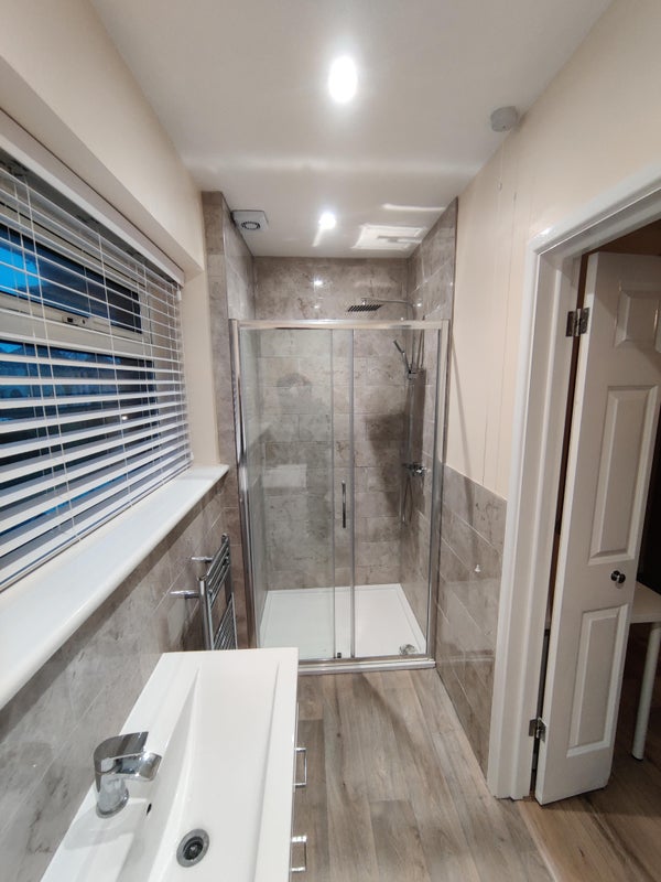 There are two shared bathrooms, and three toilets. The first floor bathroom has a bath and a separate shower, the ground floor has a shower only.