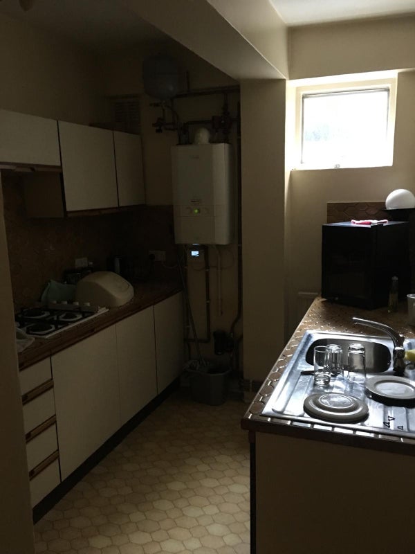The flat has one shared bathroom and a fully equipped kitchen with an oven, microwave, kettle, and washing machine.