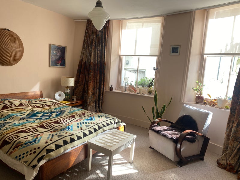 Forget the hustle and bustle: this serene, spacious room sits on a quiet street in the heart of Kemptown Village—steps from independent shops, great restaurants, the marina and the beach. Saunas, beach volleyball, a swimming pool, a yoga studio, and cosy cafés with co-working are all within a five-minute walk. At home, unwind on the sheltered garden sundeck—your little oasis in the city. Parking on street with a temporary parking permit can be arranged.