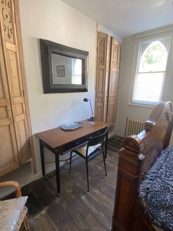 Lovely double room in Victorian Gothic House in central Lewes. Easy walk to everywhere. Antique French bed, lots of cupboard space. Open plan living with conservatory and small garden. I need someone responsible and self-contained as I am often abroad - but friendly and easy to get on with.