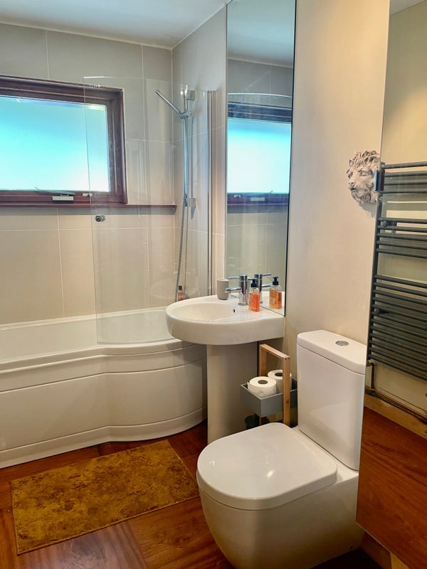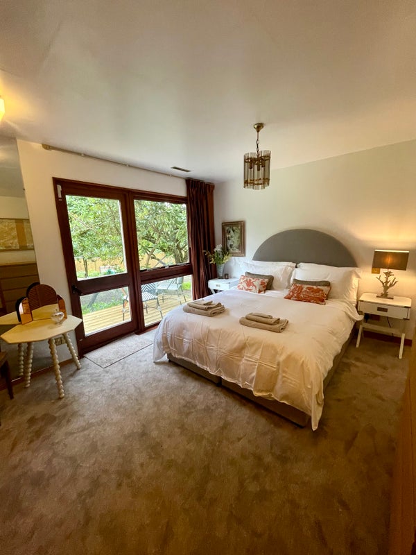 This is a good sized double bedroom with private access and access to decking with views over 2 acres of gardens filled with deer and other wildlife. It has a good sized bathroom room next door. The house is very big and bright with deer walking around it all day, You’ll share a lovely big kitchen and living area. There’s a friendly cat and a mini Dachshund, me and my 18yr old son living here, who is off to uni soon. The house is surrounded by nature and great walks from the doorstep. Ashdown Forest is ten mins away on foot. Another working woman would be great, clean and tidy is a plus,