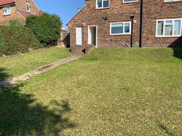 LOVELY LARGE GARDEN laid to lawn with garden table and chairs..