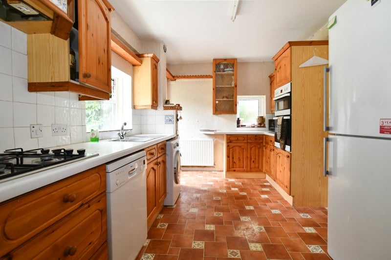 Kitchen has double oven cooker, washing machine, tumble dryer, microwave and several fridge freezers. Lovely back garden ideal for summer barbecues - gardener cuts grass for free.