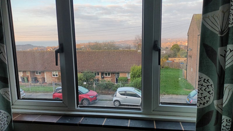 Furnished double with nice views & smart Tv. Share bright airy 3 bedroom house & Garden with 2 easy-going grown ups, and one quiet reserved human-friendly dog, friendly. CH with hot shower and bath. Extra heaters that you can use to stay comfy if the CH isn't on. Ore Village and countryside nearby with walks to the coast. Utility room. Large kitchen with washing machine. You'll have the living room to yourself on some days, share on others. Street parking and nearby bus routes to hastings, coastal to pett and rye, or Conquest Hospital. That's the good news, the bad news is the notice period is not very long see below.