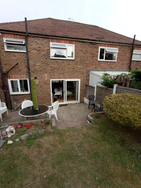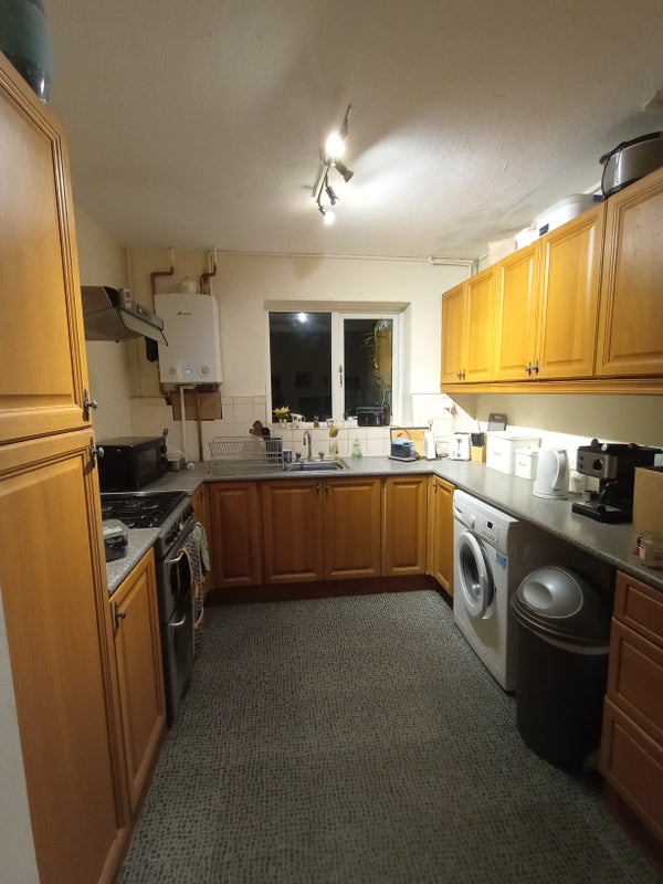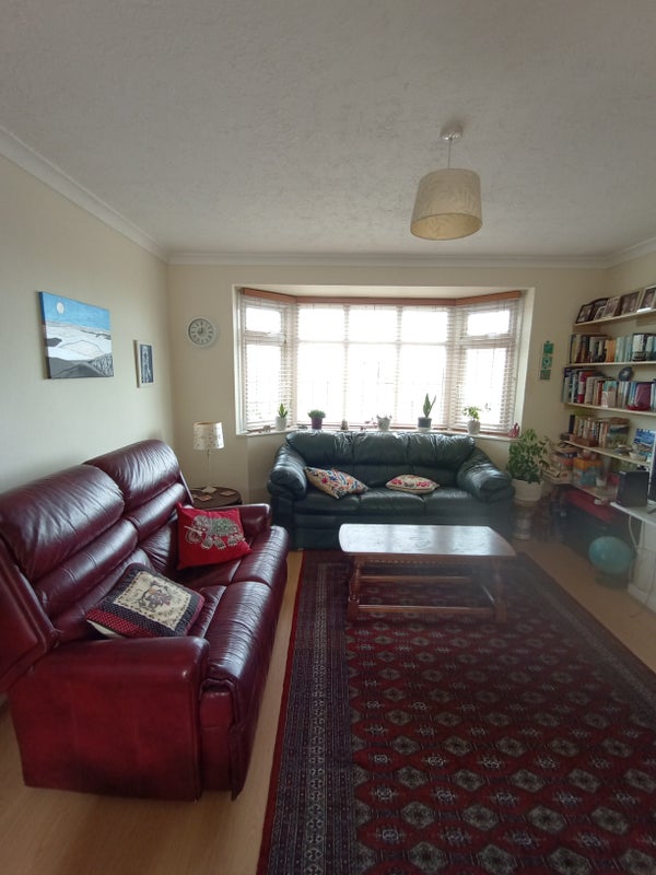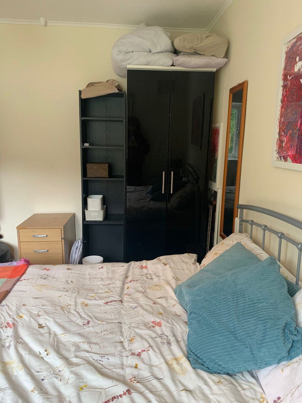 Furnished double room with king size bed, good storage space and desk, with view overlooking garden and trees. Large communal space and garden shared. Good parking and undercover bike storage.