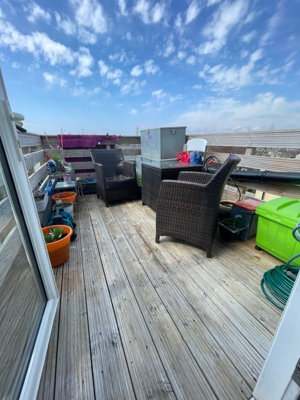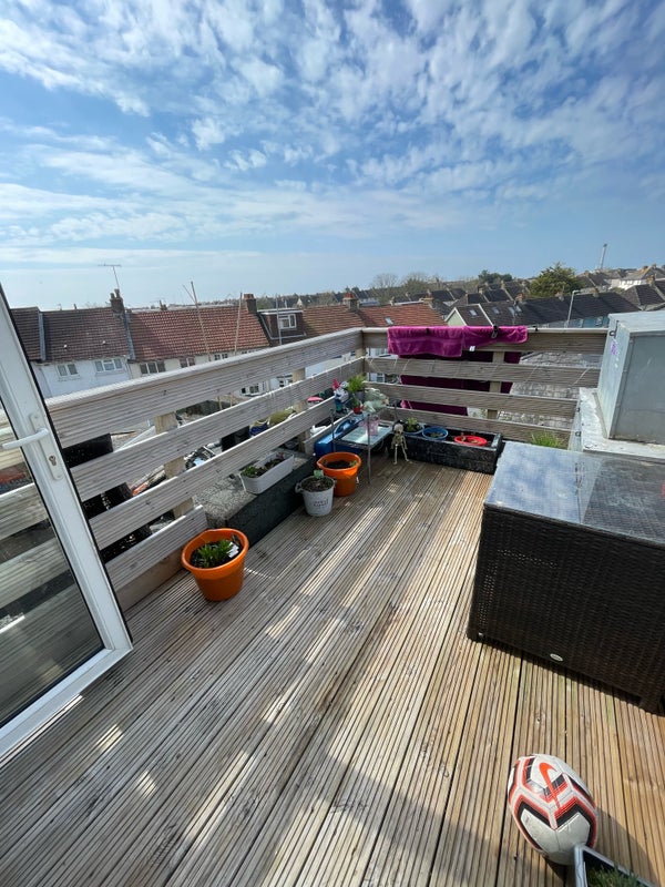 My bedsit is fully furnished and comes with a fully equipped kitchenette. The roof terrace is used by two others only. You can park on side streets free of charge. The bus stop is two minutes walk N0 1X almost direct to Brighton and Portslade Station is a 10 minute walk, with Fishersgate Station being even closer. This provides quick and convenient connections to Brighton, London, Portsmouth etc. There is Broadband, a Washing Machine . Your bathroom is equipped with a toilet, and shower. Loretta has her own bathroom, so therefore you will be sharing with one person only. There are three bathrooms within the house in total, should there be an emergency or whatever. There is a co-op shop around the corner, two-minutes walk away. There is also takeaways and a local corner shop too. Aldi and Tesco on Boundary Road, Portslade are a 10 minute walk. The present lodgers have been here for 5+ years and it's been a pleasure. Any questions or queries please don't hesitate to ask.