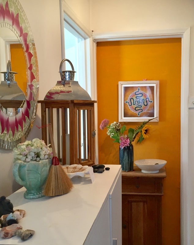 I am a writer, coach and shamanic practitioner and I work from home. I also I run occasional immersion days and workshops from my home. Most of the work happens in my garden cabin/temple.