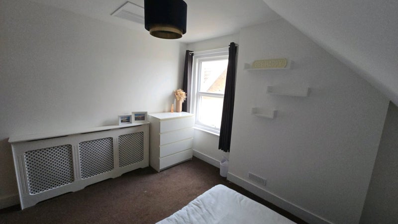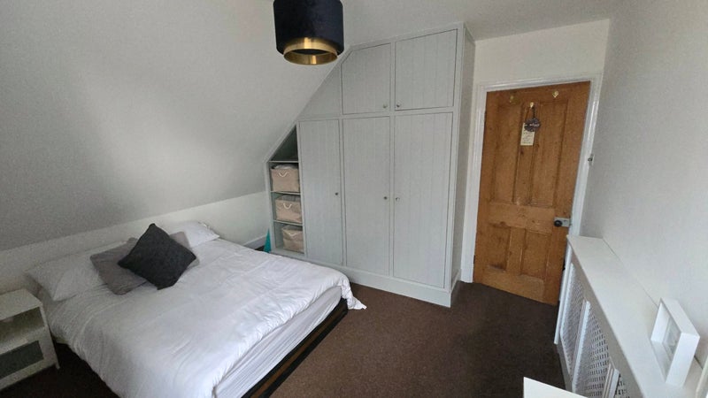 Freshly painted cosy double room available in a quiet, well-maintained female professional household. The furnished room includes a double bed, fitted wardrobe, bedside table and chest of drawers.