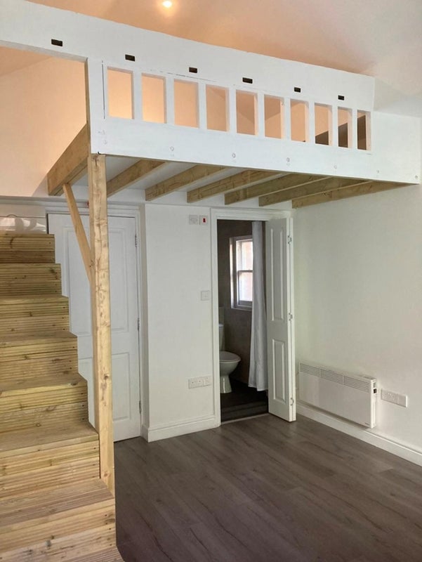 The room is fitted with an oven, hob and fridge and if required, a washing machine. The double bed is on a raised platform which you cannot stand up in but is comfortable with enough headroom.