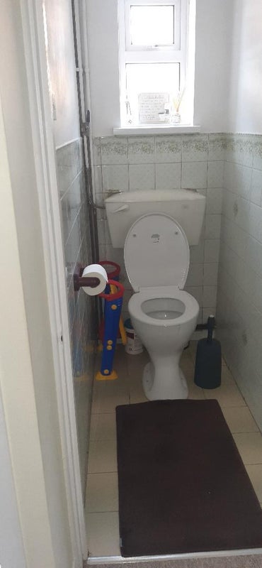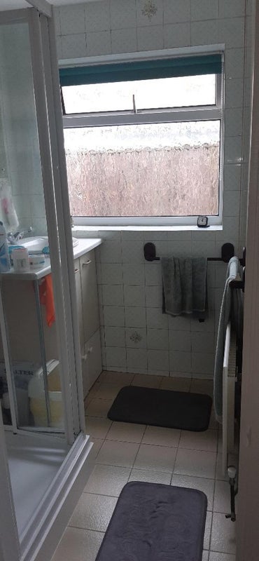 Bathroom consists of a stand in shower and separate toilet.
