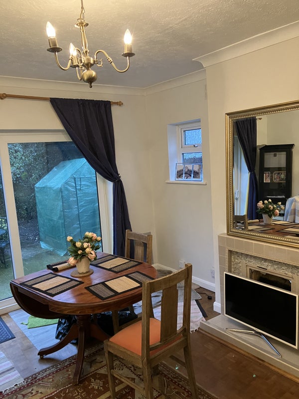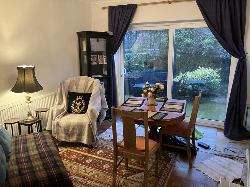 Hi there, The bedroom is on the garden level and has seperate garden entrance, its own lounge/diner (this room has the dog door in it and access to garden for our dogs), private kitchenette and shared bathroom with one other female lodger - a 35 year old female professional who’s very good natured.