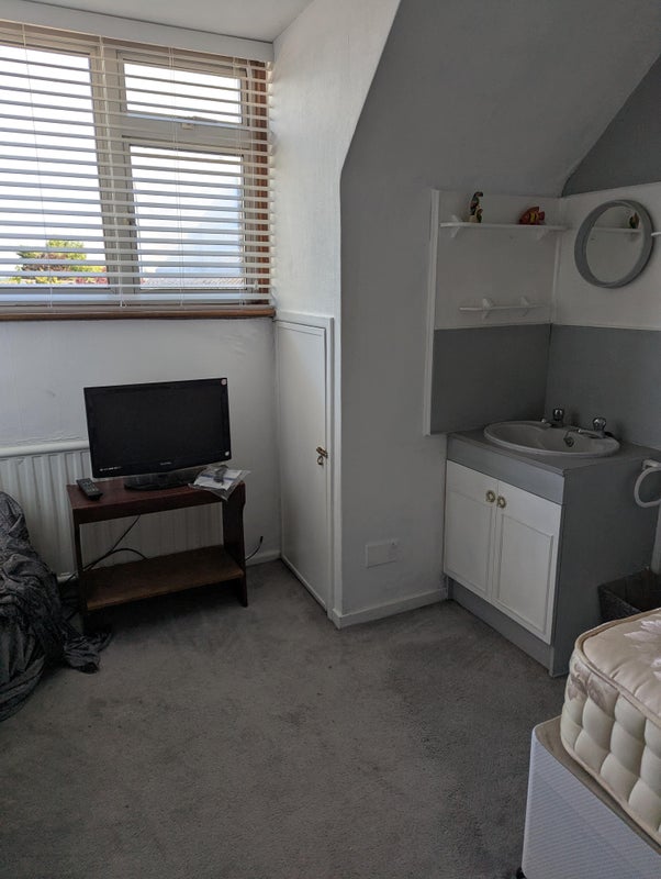 comprises of a large single bed a built in wardrobe and a vanity sink area. Work/ desk area and drawers. There is wireless broadband access in the room. Other Bills are included in the rent. There is television in the room.