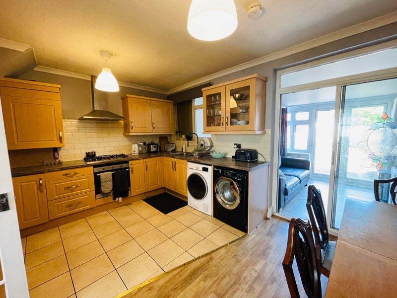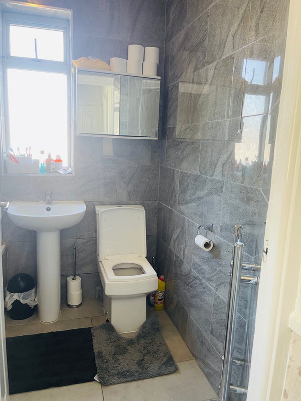 Property has a fully tiled bathroom and an extra toilet. Very large kitchen has big dining table with chairs and all the equipment such as washing machine, tumble dryer, hob & oven, microwave, toaster, kettle and water filter jug. Have plenty of cooking pans, plates, cups and glasses, cutlery and vacuum cleaner that free to use.