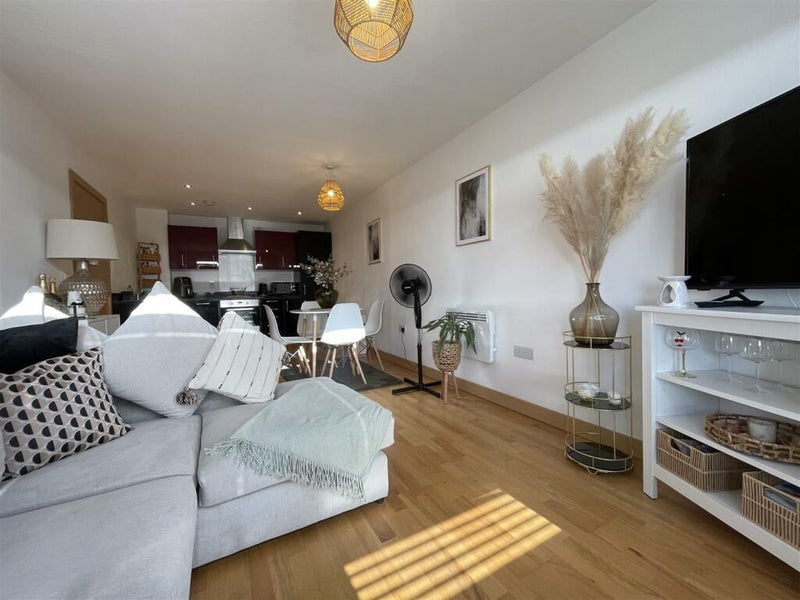 Accommodation boasts an inviting entrance hallway with secure intercom entry system, lovely size open plan lounge/kitchen/diner, large bedroom with fitted wardrobes and a modern bathroom. Fitted washing machine included.