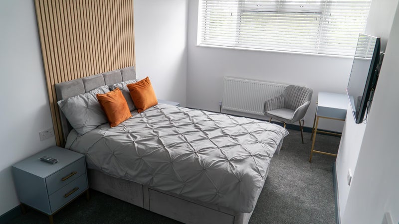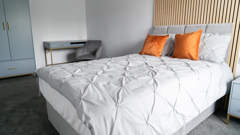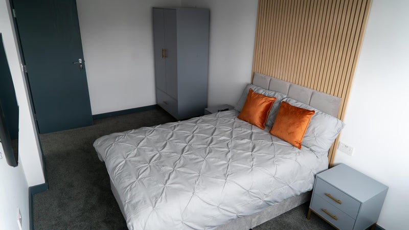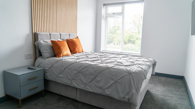 - Double bed with a set of linen and under bed storage