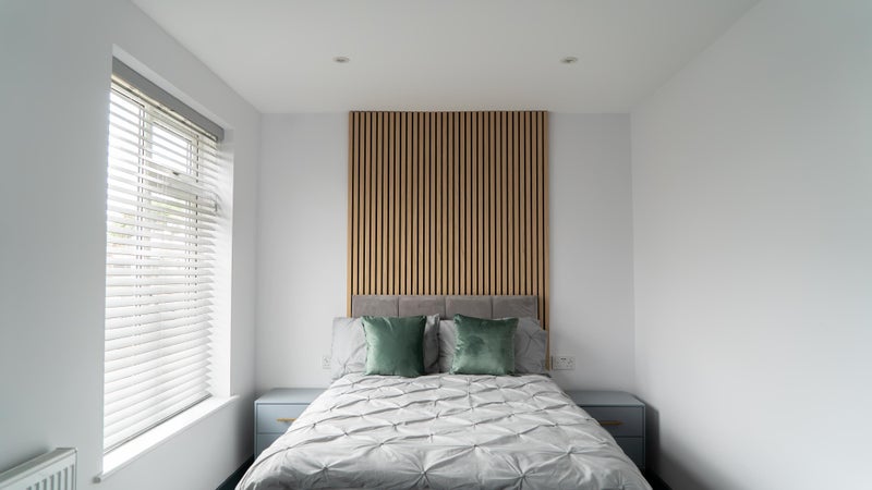 - Luxurious panel headboard feature.