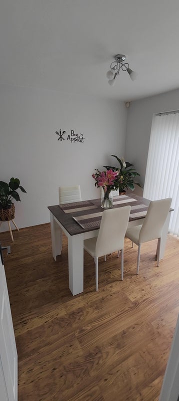 Spacious and bright fully furnished double room available in a clean, quiet house. The room is much larger than typical rentals and includes a double bed, wardrobe, chest of drawers, table with seating, plenty of storage, and a private fridge.